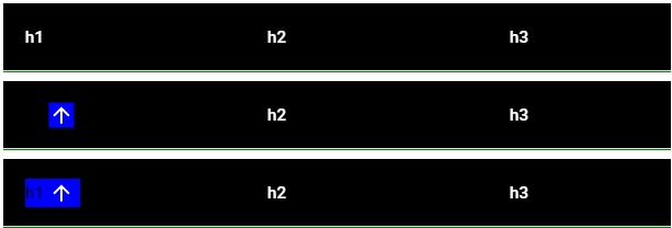 La couleur du texte est initialement grise et il n'y a pas de flèche. Lorsque la souris est survolée, une flèche grise apparaît et le texte devient noir. En cliquant dessus, l'état actif est défini, la flèche grise devient noire et le texte devient noir de manière permanente jusqu'à ce que l'état actif soit supprimé.